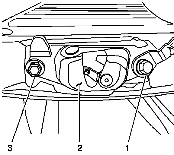 3. Loosen the bolt (3) that attaches the opposite end of the support cable to the latch assembly (2).