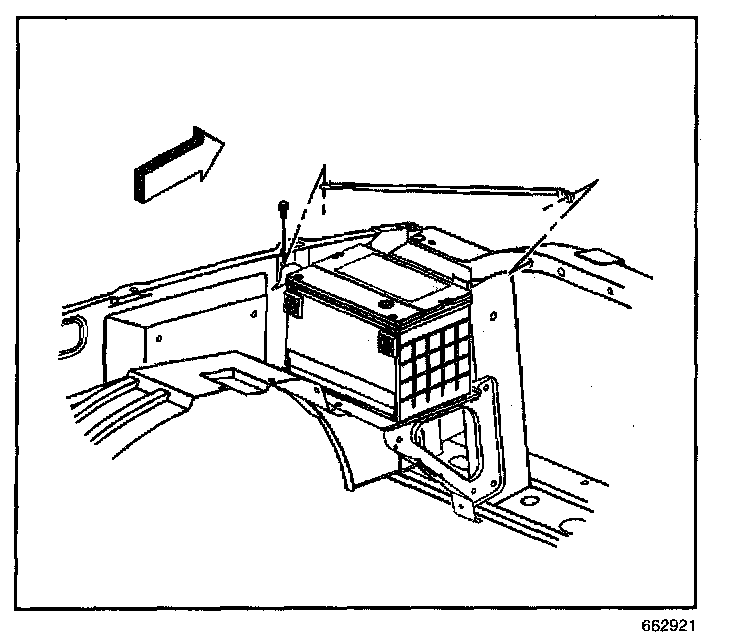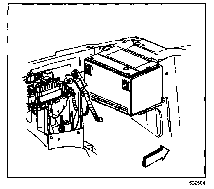 Tighten the battery hold down retainer bolt to 25 N.m (18 lb ft).