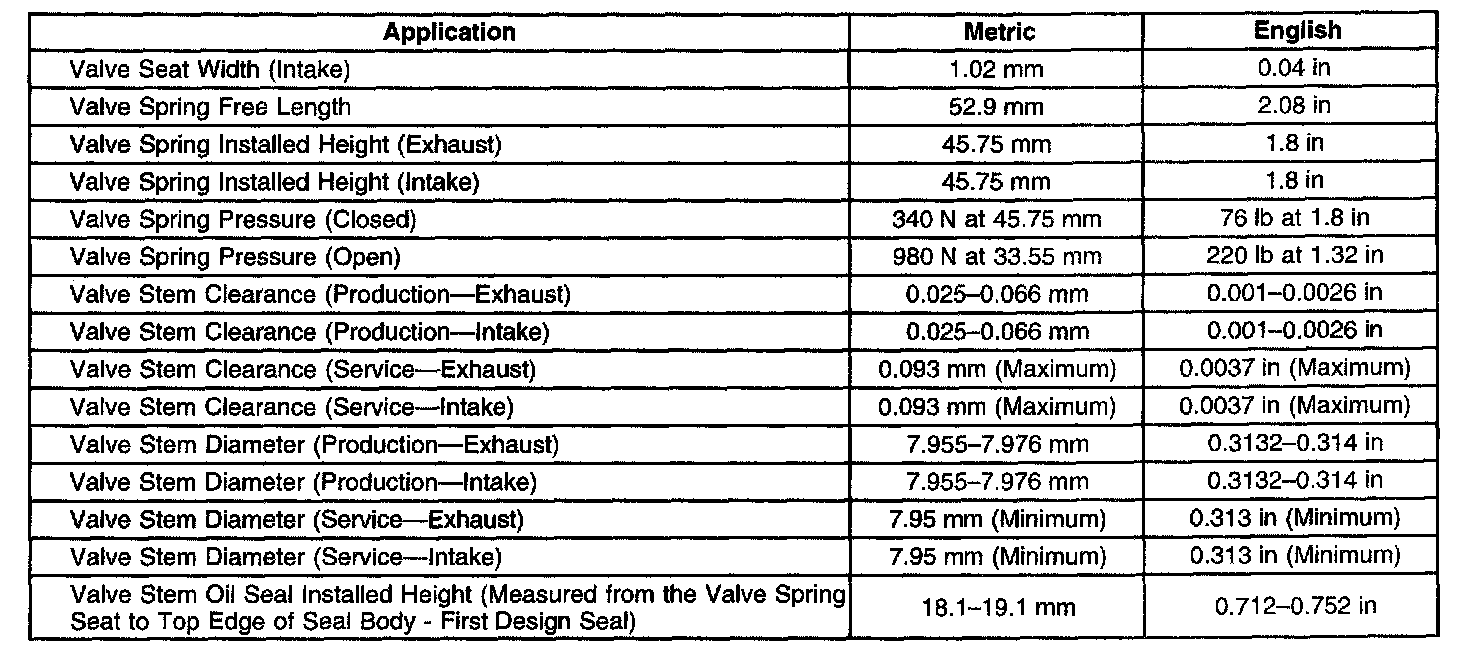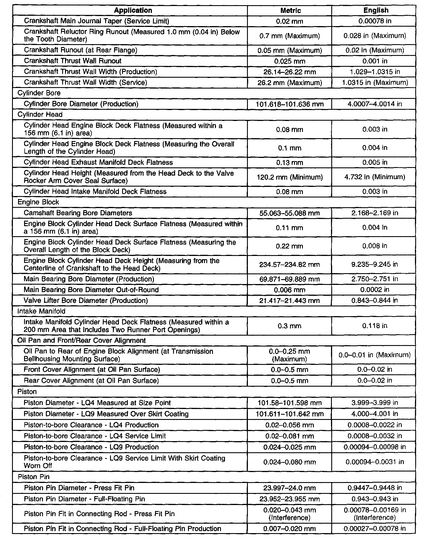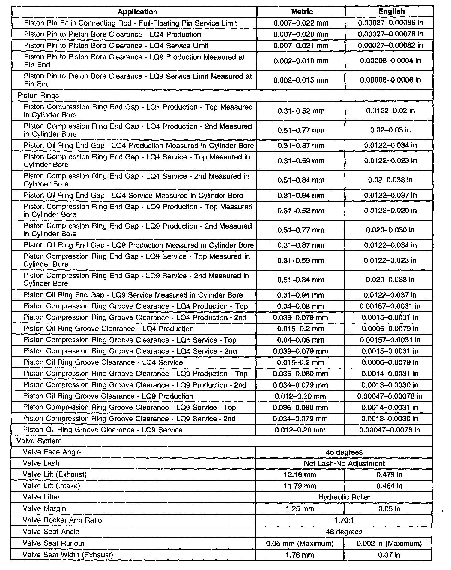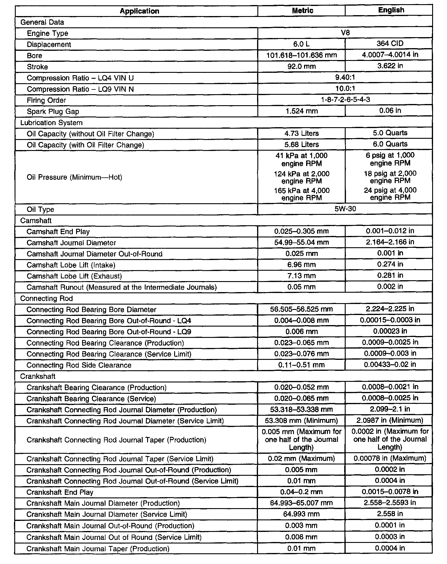 Engine Mechanical Specifications (LQ4 VIN U/LQ9 VIN N)
