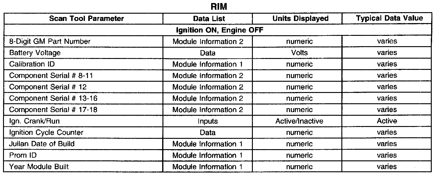 Scan Tool Data List - Rear Integration Module (RIM)
