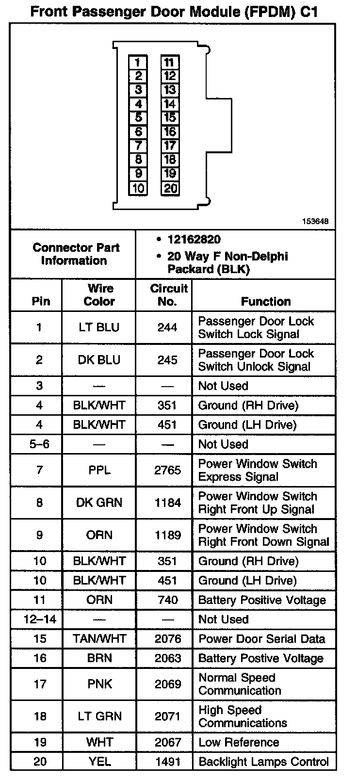 Front Passenger Door Module (FPDM) C1: