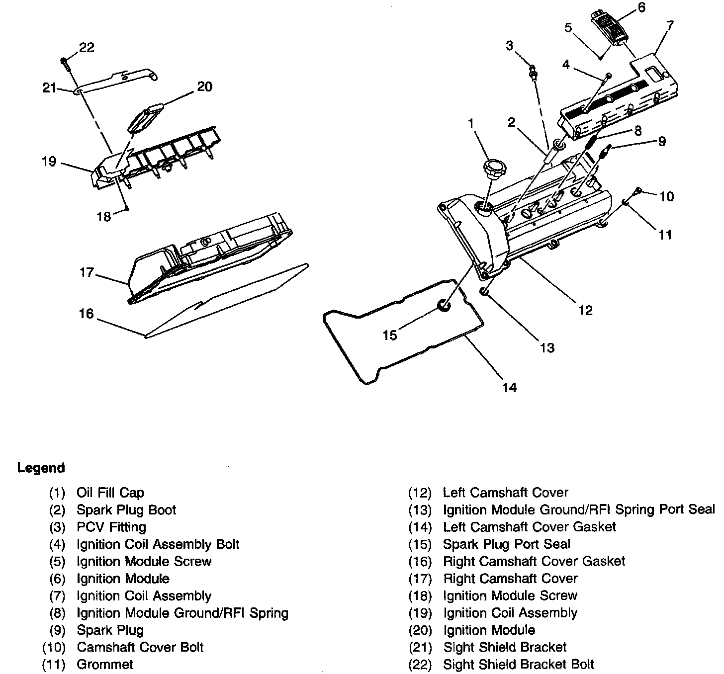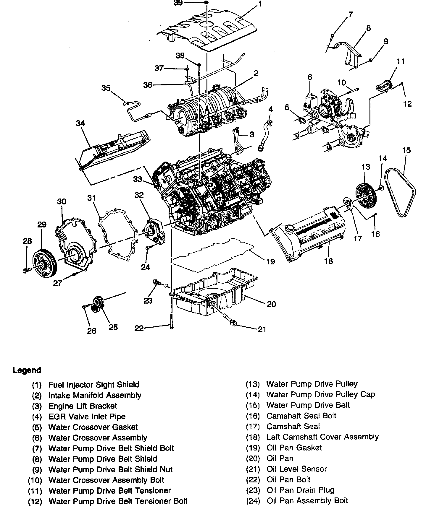 Disassembled Views (Seville/DeVille)Engine Covers and Component Assemblies (1 of 2)