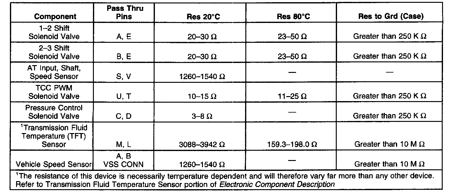 Transmission Fluid Temperature (TFT) Sensor Specifications