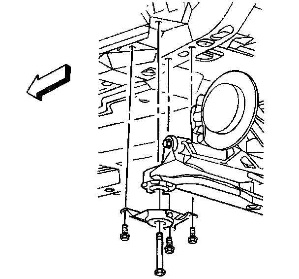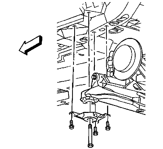6. Remove the mounting bolts securing the front of the support assembly to the vehicle.