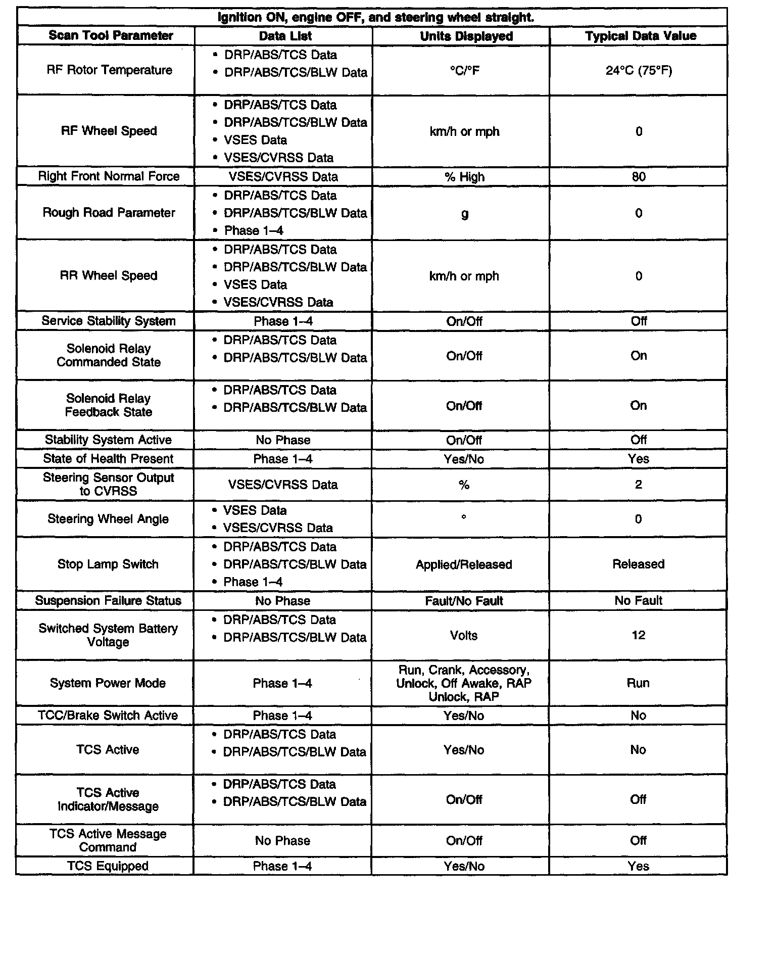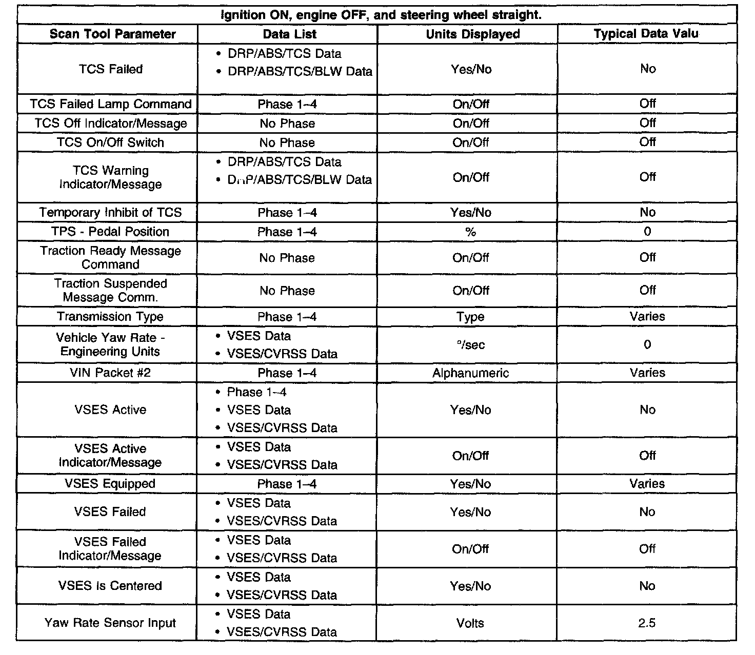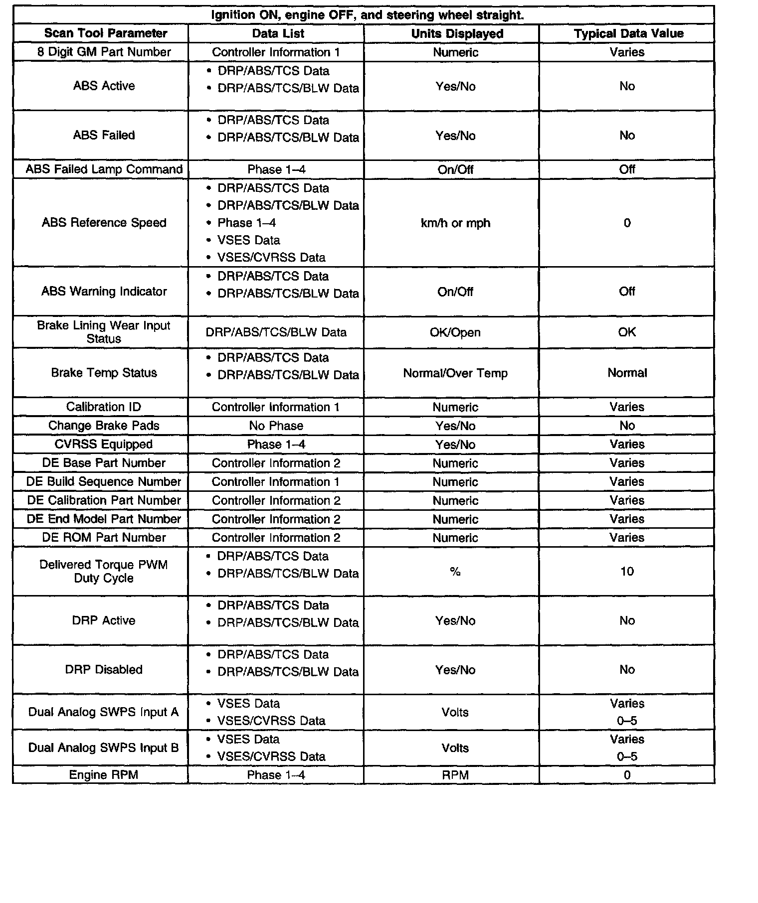 Scan Tool Data List