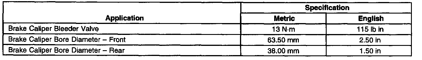 Brake Component Specifications