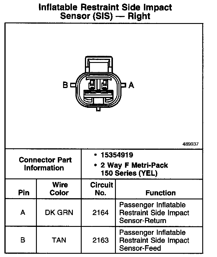 Inflatable Restraint Side Impact Sensor (SIS) - Right: