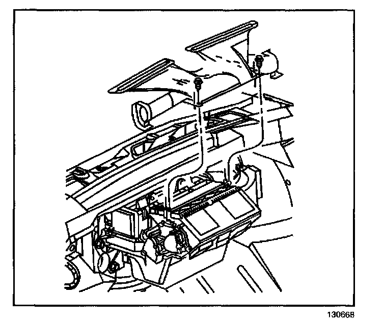 9. Remove the heater and evaporator module retaining nuts.