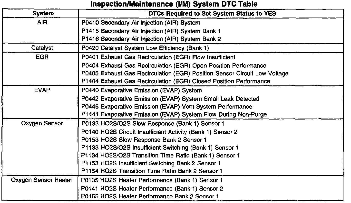 IMPORTANT: Not all vehicles will have every diagnostic trouble code (DTC) listed in each section. For example, a vehicle may have only 2 oxygen sensors or 1 catalyst. Only those DTCs applicable to the vehicle are required to update each System Status to YES. Refer to DTCs for each vehicle.