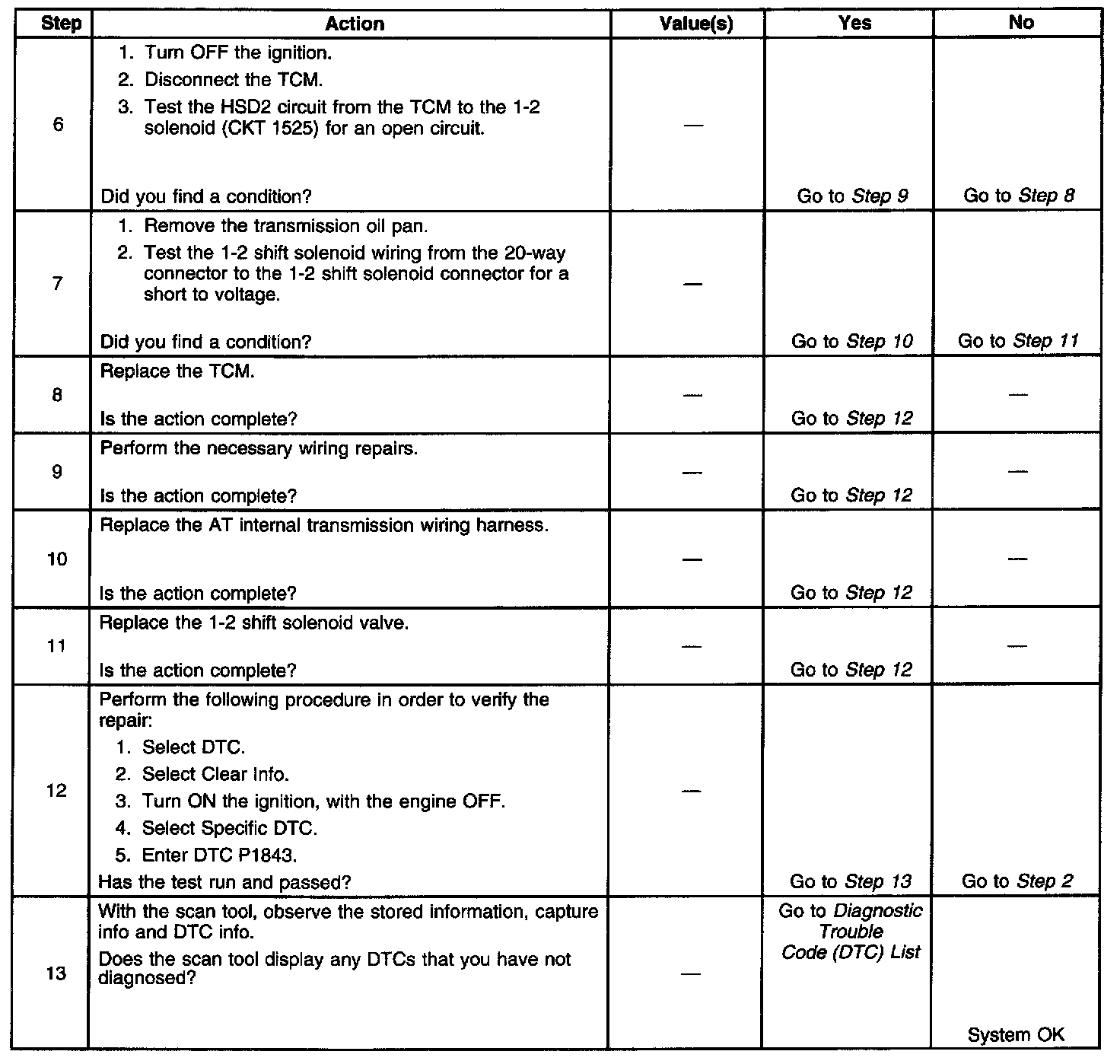 When the TCM detects a continuous short to voltage in the 1-2 shift solenoid valve circuit, then DTC P1843 sets. DTC P1843 is a type B DTC.