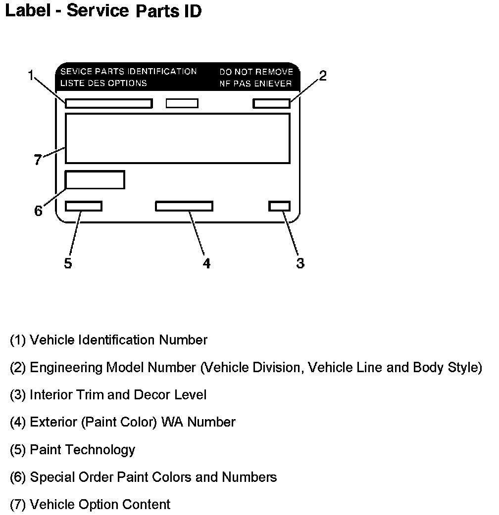 The Service Parts Identification Label or (SPID label) is a label that has been developed and placed on the vehicle to aid service and parts personnel in identifying parts and options originally installed on the vehicle.