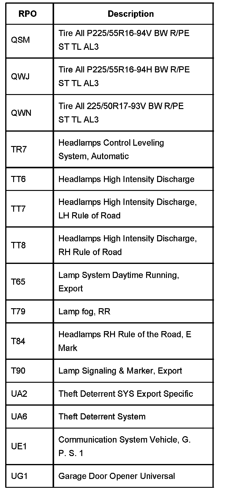 RPO Code List Part 5 (QS - UG):