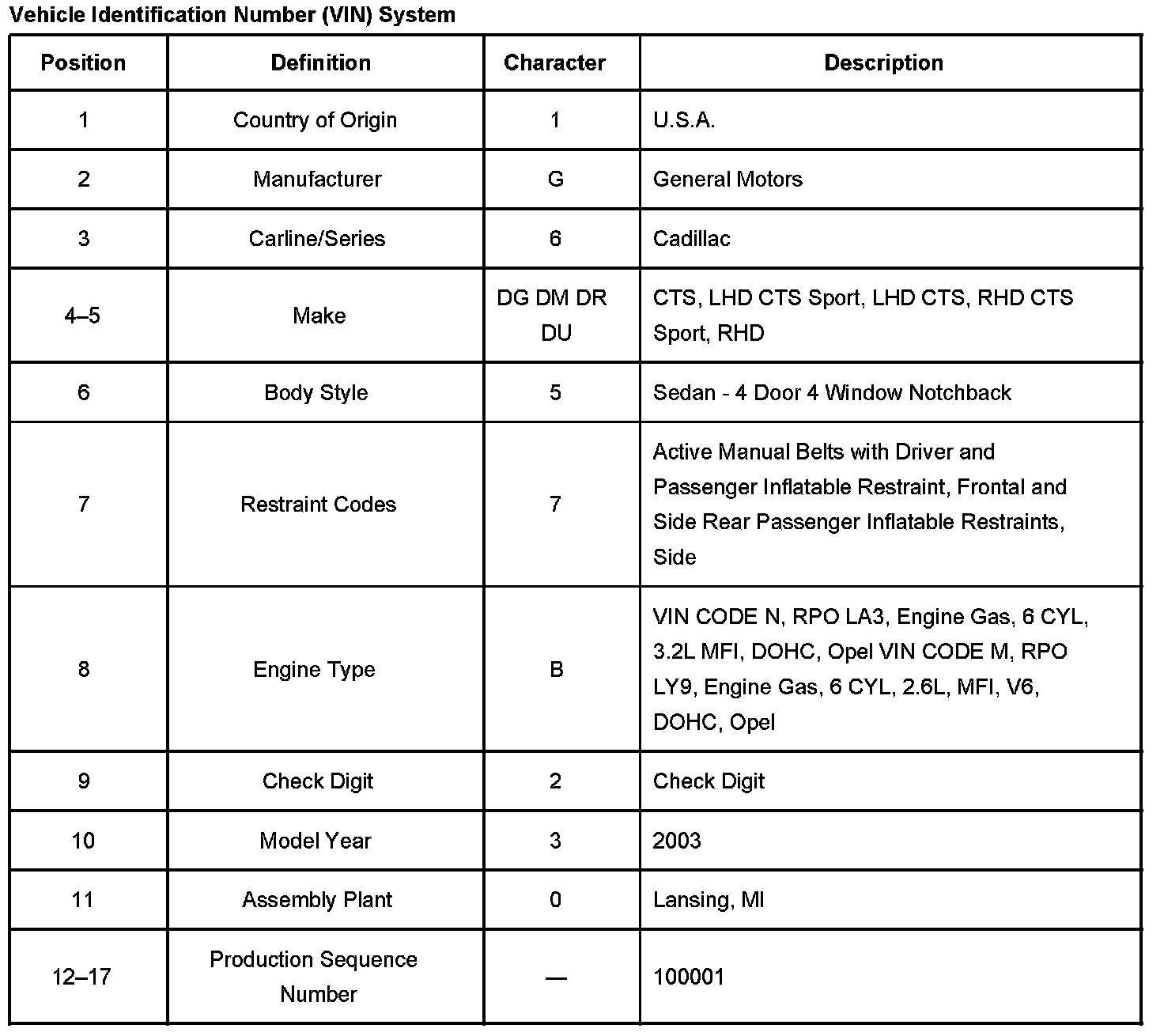 Vehicle Identification Number (VIN) System: