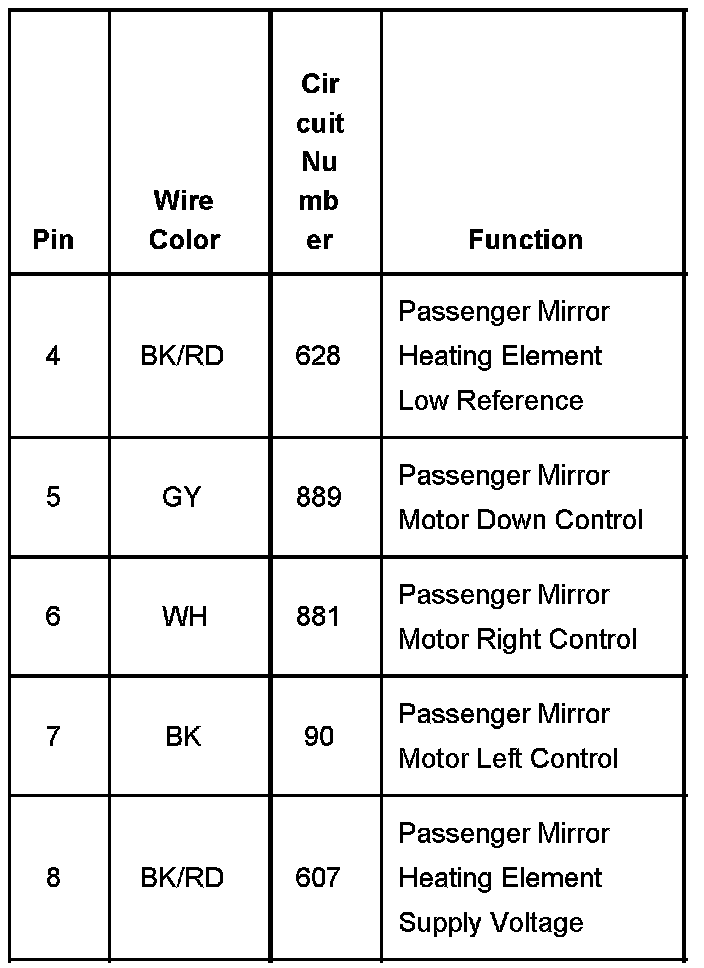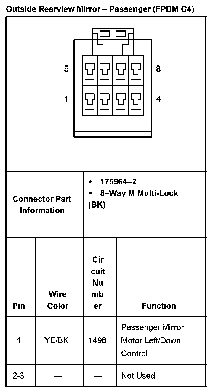 Outside Rearview Mirror Passenger (FPDM C4) Part 2: