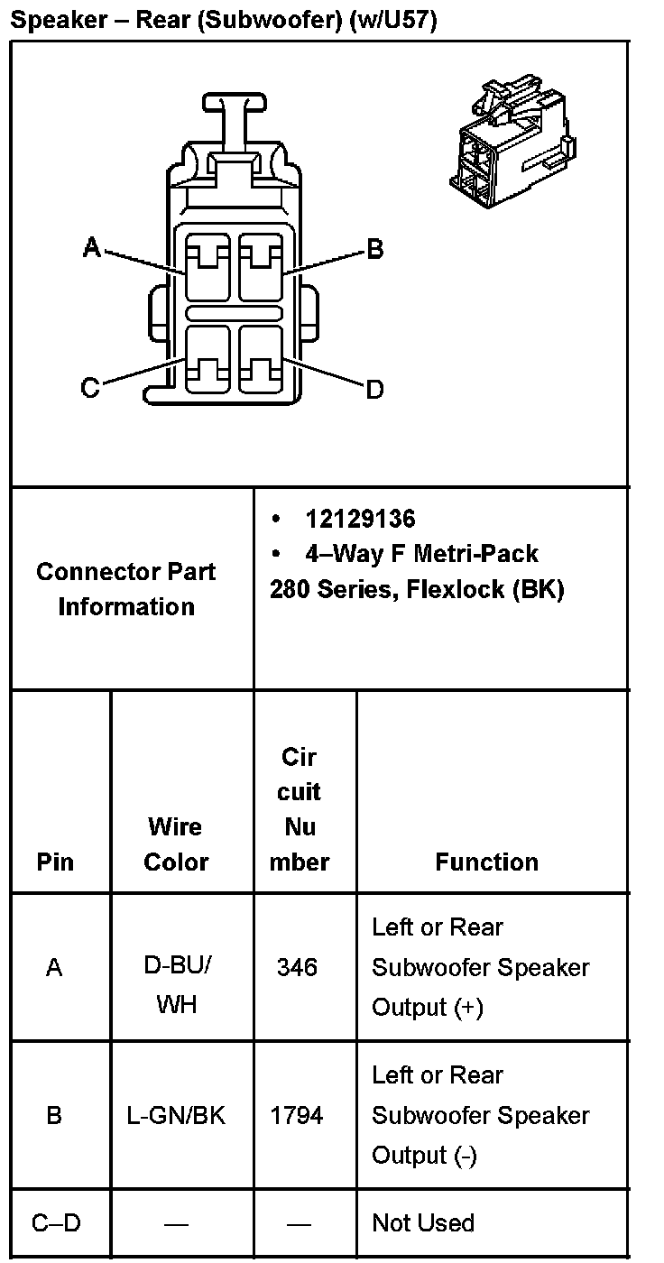 Speaker - Rear (Subwoofer) (With RPO Code U57):