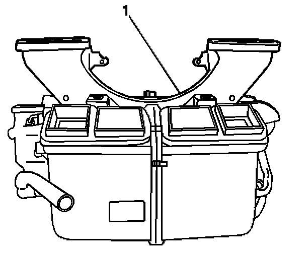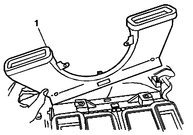 3. Press in on the tab to release the defroster duct (1) from the HVAC module.