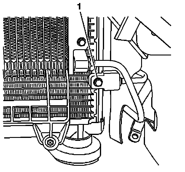 5. Remove the condenser inlet hose bolt (1) at the condenser