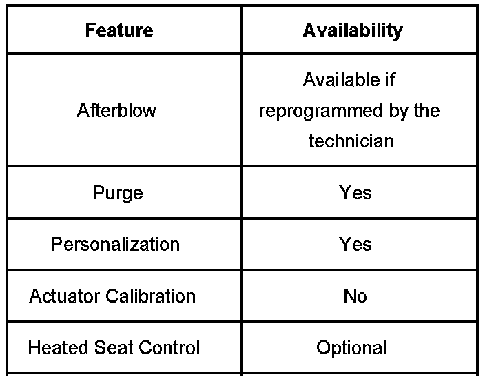 The HVAC control module will receive information that defines the current driver of the vehicle from the driver door module (DDM) through class 2 communication. The HVAC system will memorize the following system configurations for up to three unique drivers: