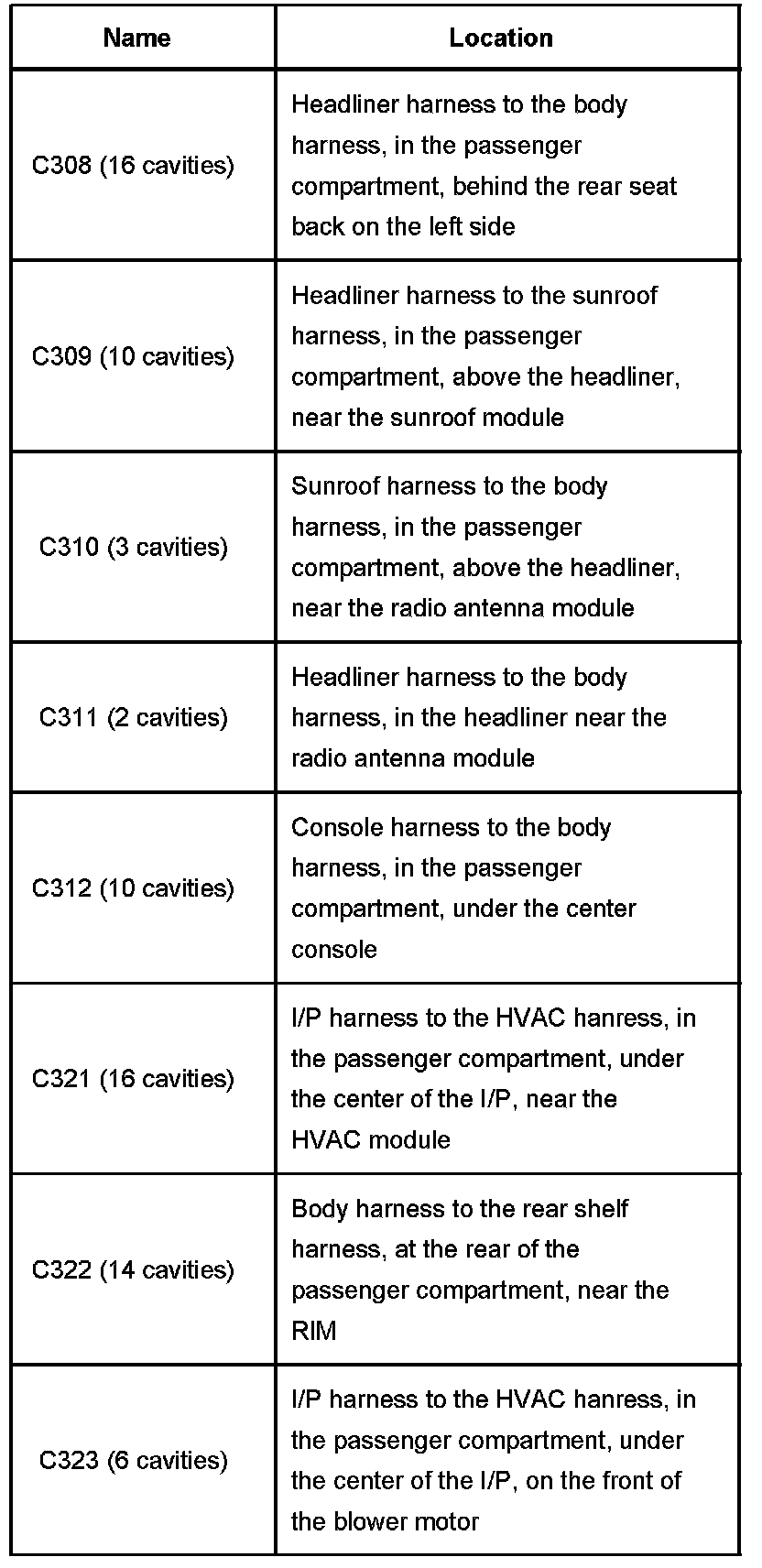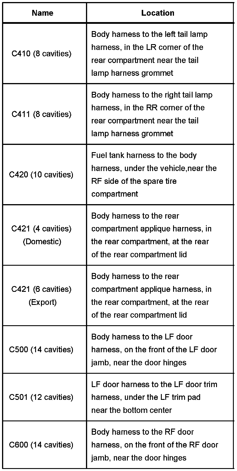 Connector Locations