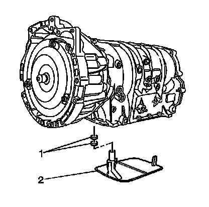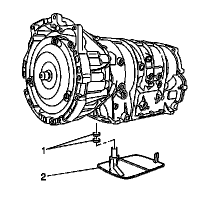 1. Install 2 NEW fluid filter seals (1), onto the transmission fluid filter neck. Coat the new seals with a small amount of J 36850 or petroleum jelly before installation..
