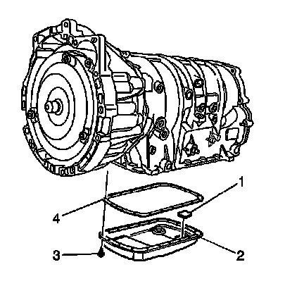 3. Install the fluid pan (2) and the gasket (4) at the same time.