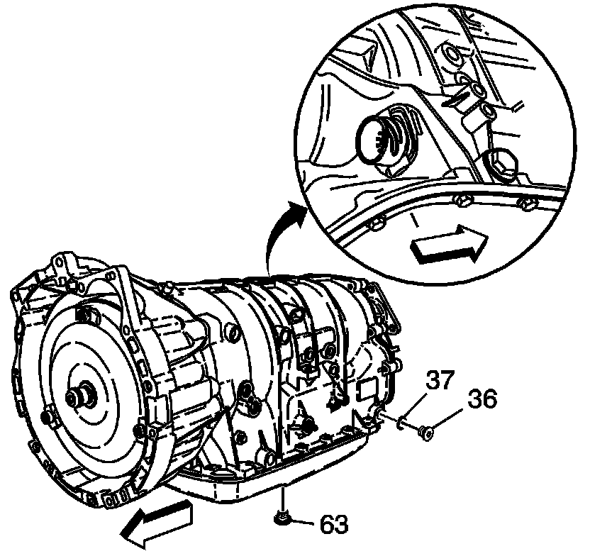 CAUTION: The engine must be running when the transmission fluid fill plug is removed, or excessive fluid loss will occur. Transmission fluid may be hot. Since the actual fluid level is unknown, stand clear when removing the fill plug. Have a container ready to capture any lost fluid. Do not turn the engine off with the fill plug removed, as you can be injured by hot transmission fluid being expelled out of the oil fill opening.