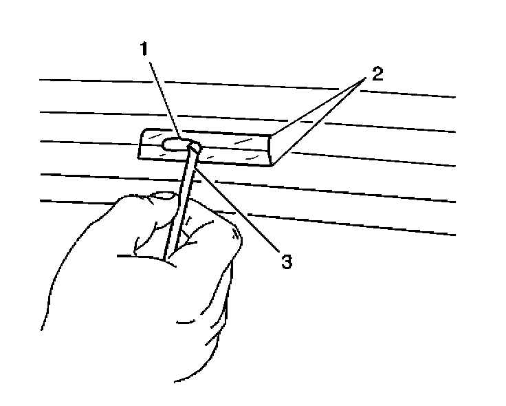 2. Use the brush (3) in order to spread the grid line repair material (1). Ensure that the repair material covers all of the areas of the cut out.