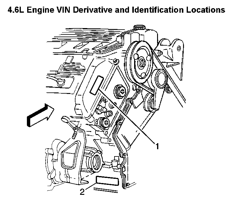 ENGINE ID AND VIN DERIVATIVE LOCATION4.6L ENGINE VIN DERIVATIVE AND IDENTIFICATION LOCATIONS