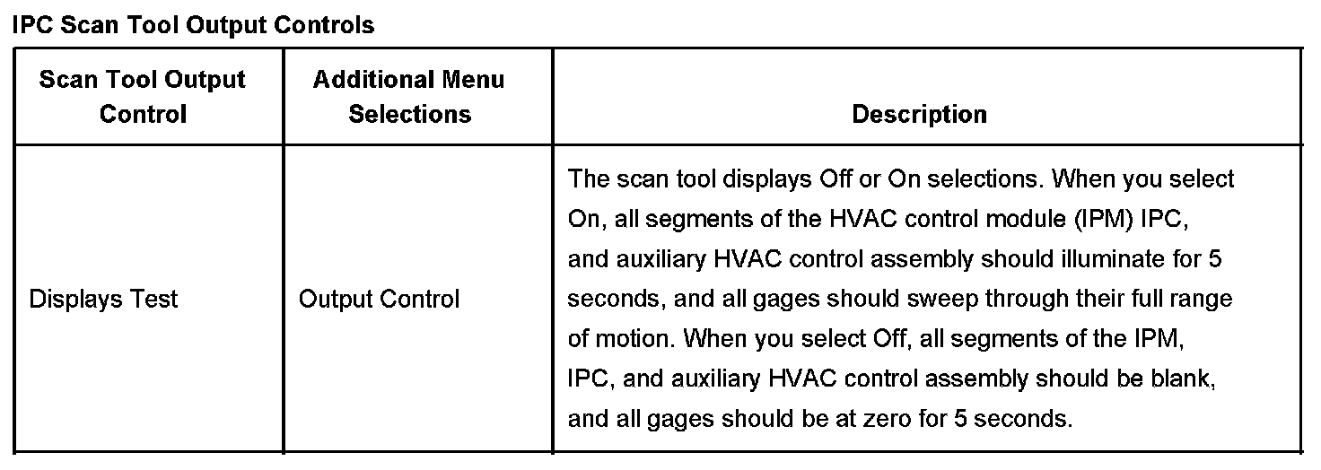 Scan Tool Output Controls - Instrument Panel Cluster (IPC)