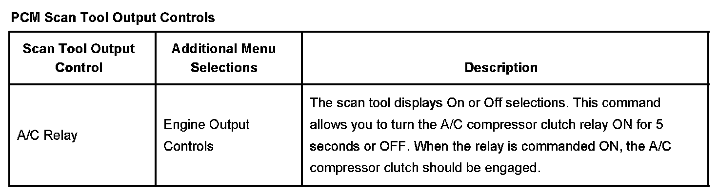 Scan Tool Output Controls - Powertrain Control Module (PCM)
