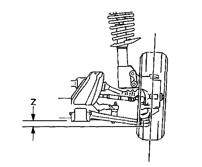 The Z height dimension measurement determines the proper ride height for the front end of the vehicle. There is no adjustment procedure. Repair may require replacement of suspension components.