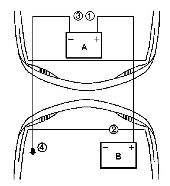 11. The black negative (-) cable must be first disconnected from the vehicle that was boosted (4).