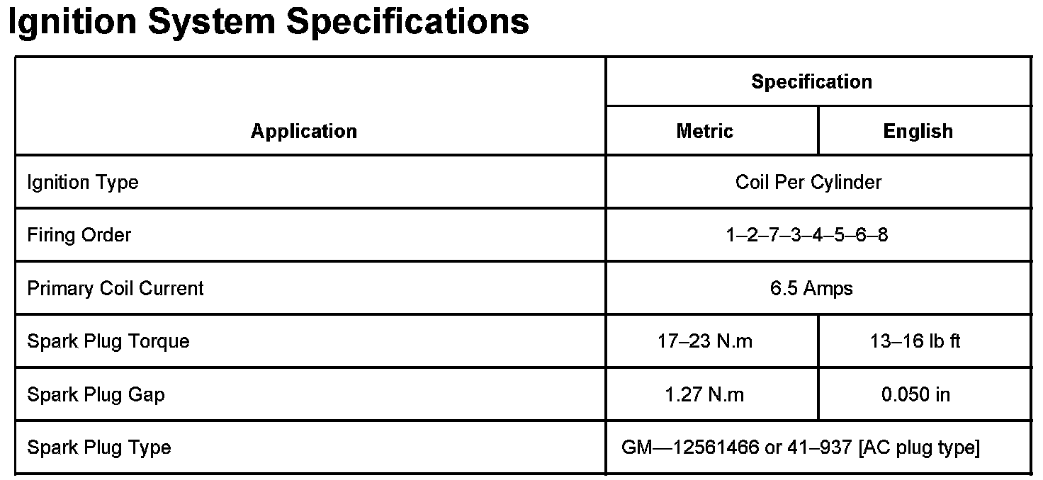 Ignition System Specifications (KSP~Body (DeVille) 4.6L):
