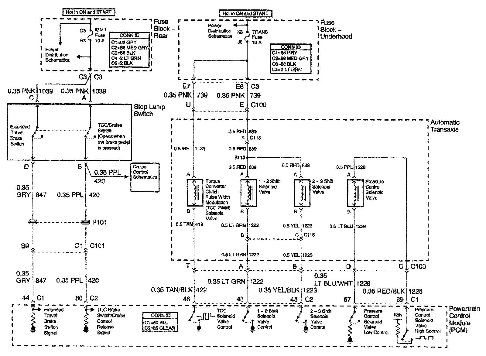Automatic Transmission Controls Diagrams (Stop Lamp Switch And Transaxle Solenoids):