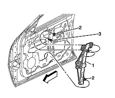 2. Install the window regulator fasteners (2, 3).