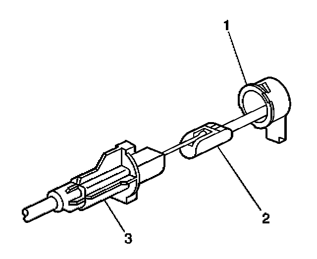 3. Snap the cruise control cable (3) into the cruise control module (1).