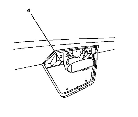 4. Release the right side endgate handle latch rod retainer (3)