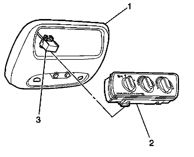 3. Remove the auxiliary HVAC control assembly (2) by releasing the tabs at the rear of the control and push out from the rear.