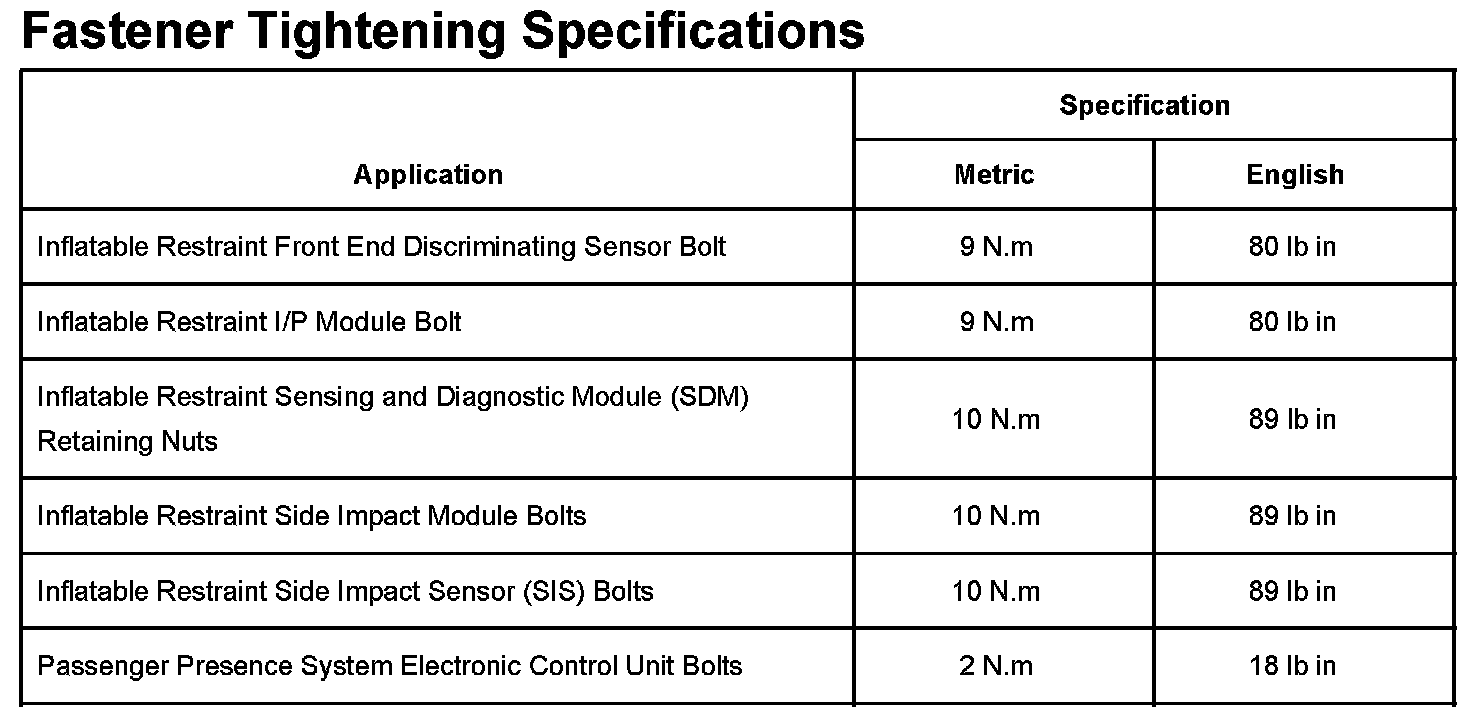 Fastener Tightening Specifications: