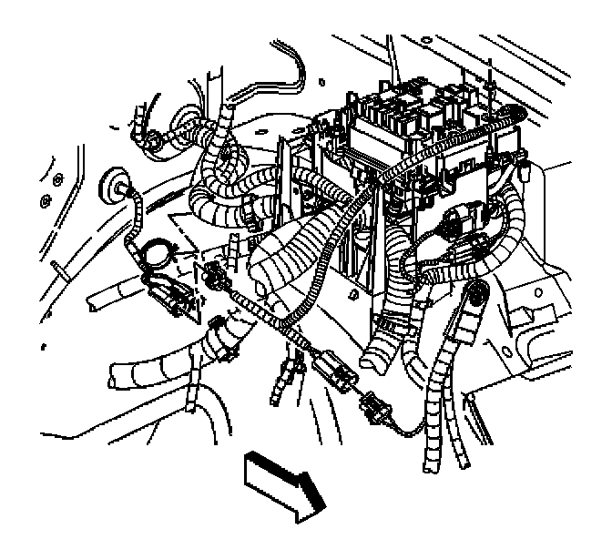 12. If equipped, connect the accessory power fuse block front wiring harness electrical connector to the negative cable connector.