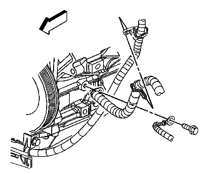 11. Remove the forward lamp wiring harness ground/negative cable bolt.