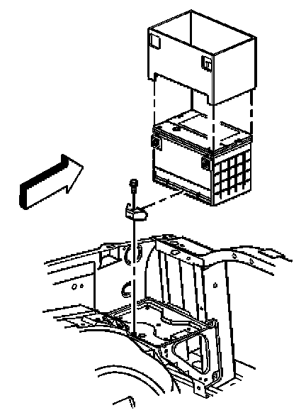 5. Remove the battery hold down retainer bolt and retainer.