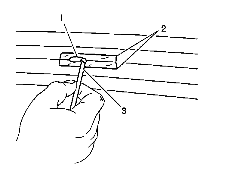 3. Without disturbing the grid line repair material, carefully remove the decal or tape (2).