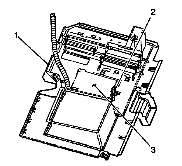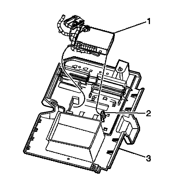 6. Release the vehicle communication interface module (VCIM) (3) retaining tab (2).