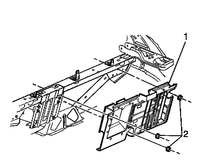 5. Place the electrical component mounting bracket (2) module side up in the rear compartment.
