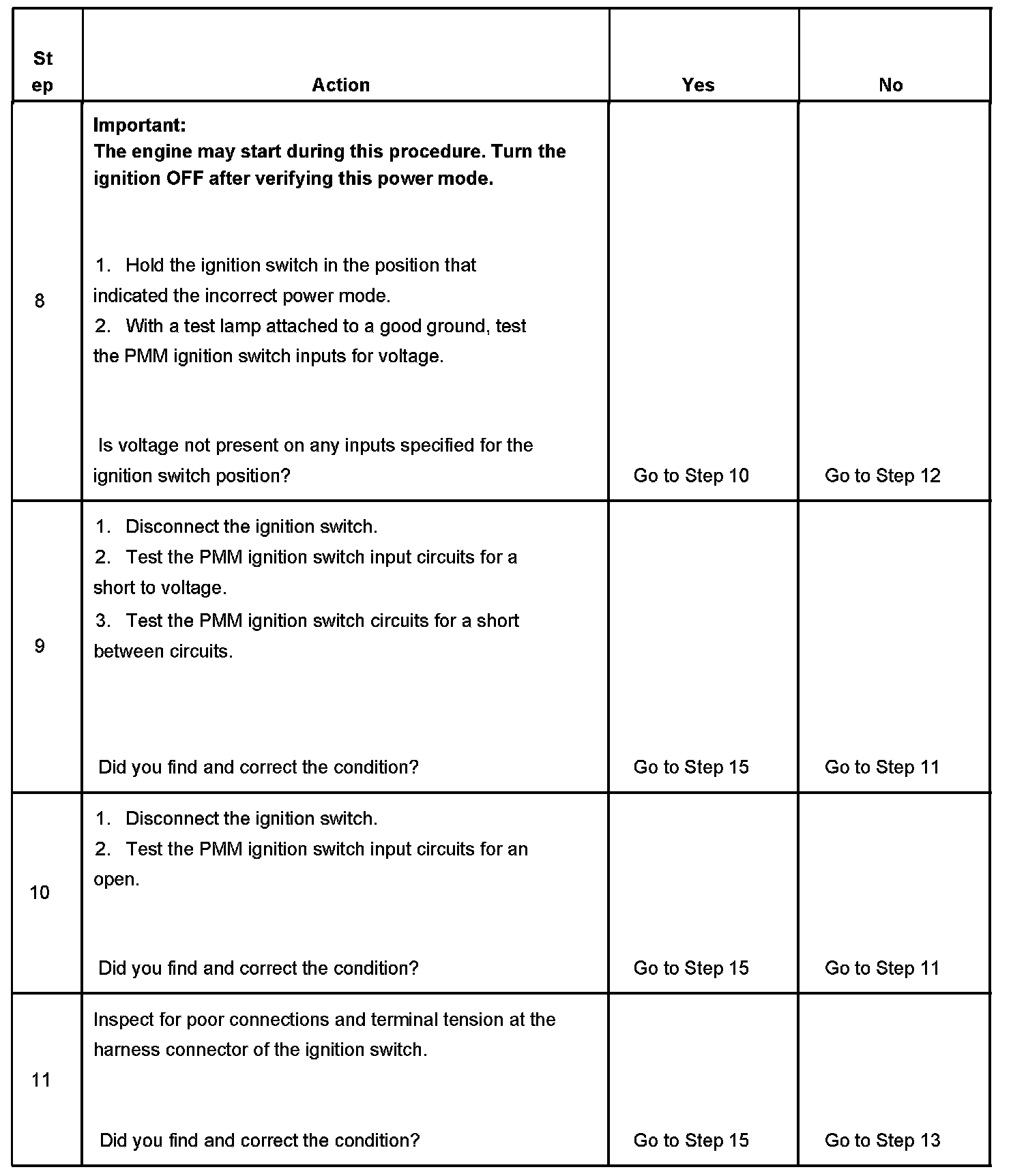 9. If any ignition switch parameters that should be inactive in the present ignition switch position are active, 2 ignition switch signal circuits may be shorted together.