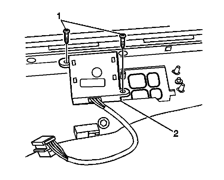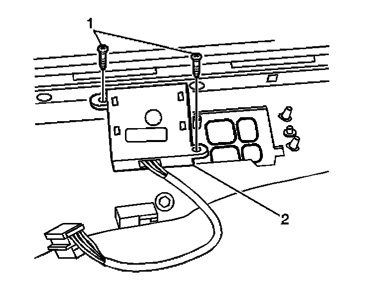 4. Remove the fasteners (1) from the memory seat switch (2).