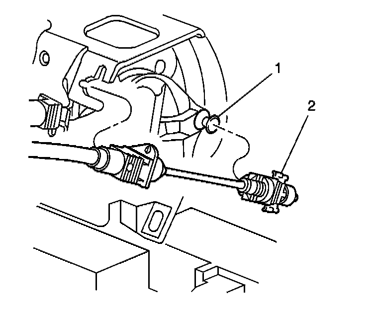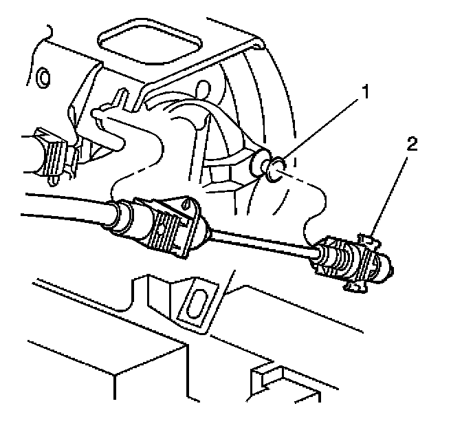 1. Remove the cruise control cable (2) at the throttle body lever (1) and at the throttle body bracket.