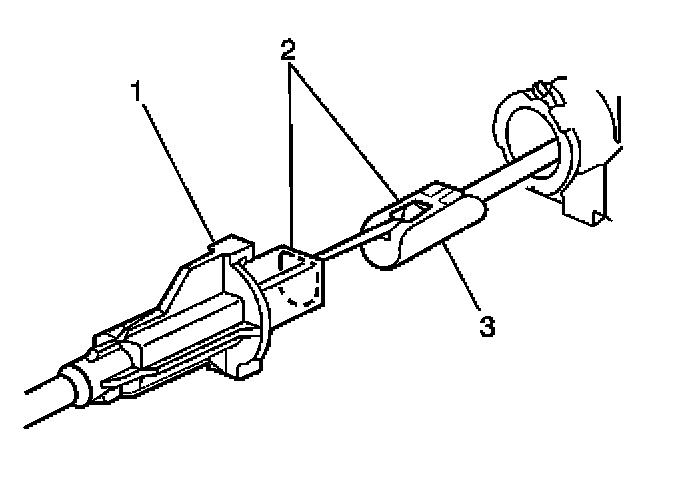 2. Remove the cruise control cable (1) from the cruise control module connector (3).