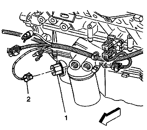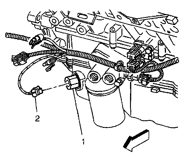 2. Disconnect the electrical connector (2) from the engine oil level sensor (1).